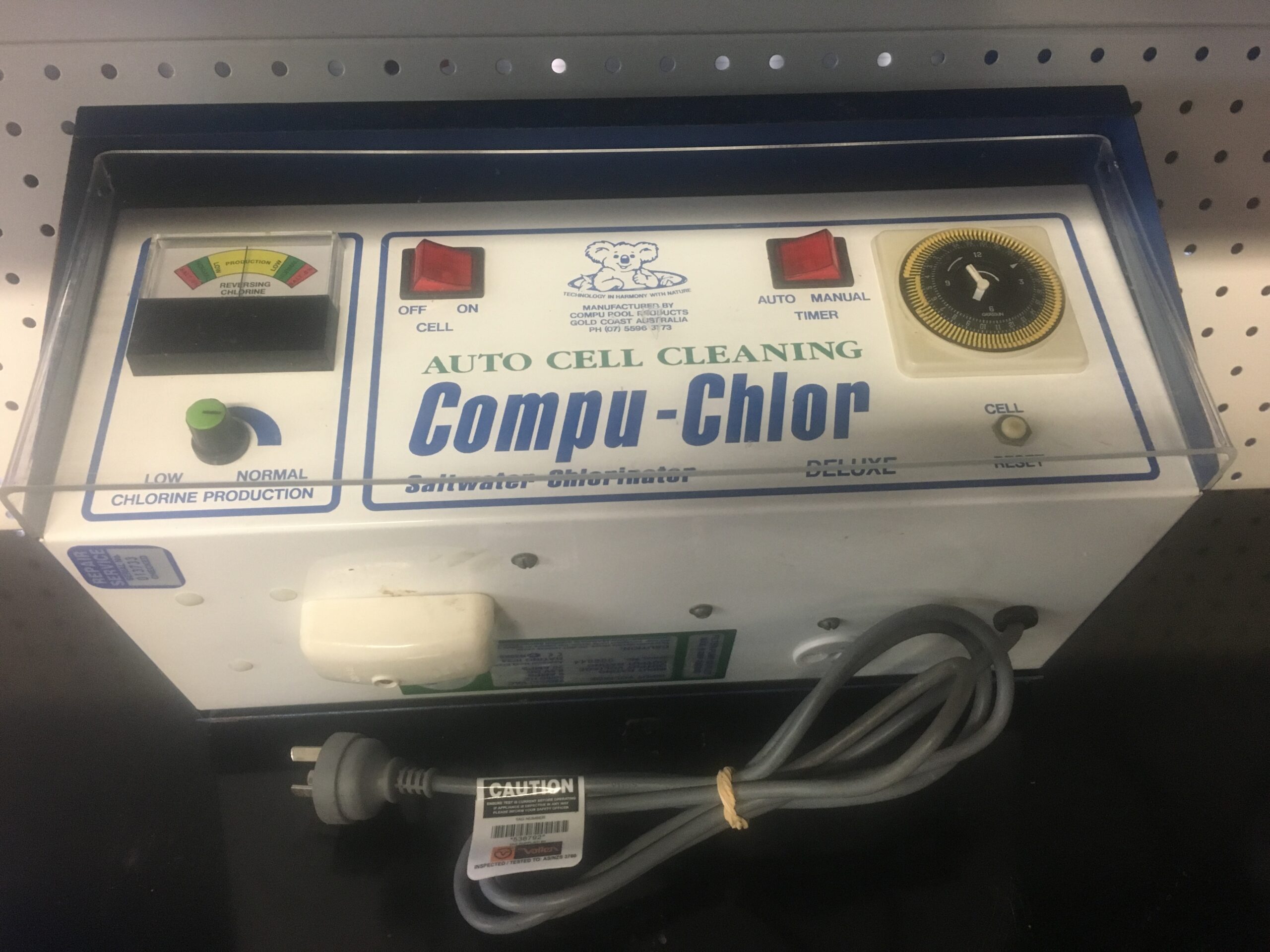 Aquamech Services Pty Ltd ATF Harper Family Trust are licensed electrical contractors (Lic No 82693) and all our repaired items are electrically tested and tagged in accordance with the Australian/New Zealand Electrical Installation Verification Guidelines. Don’t risk your own or family’s safety by buying a second hand chlorinator that is not test and tagged.